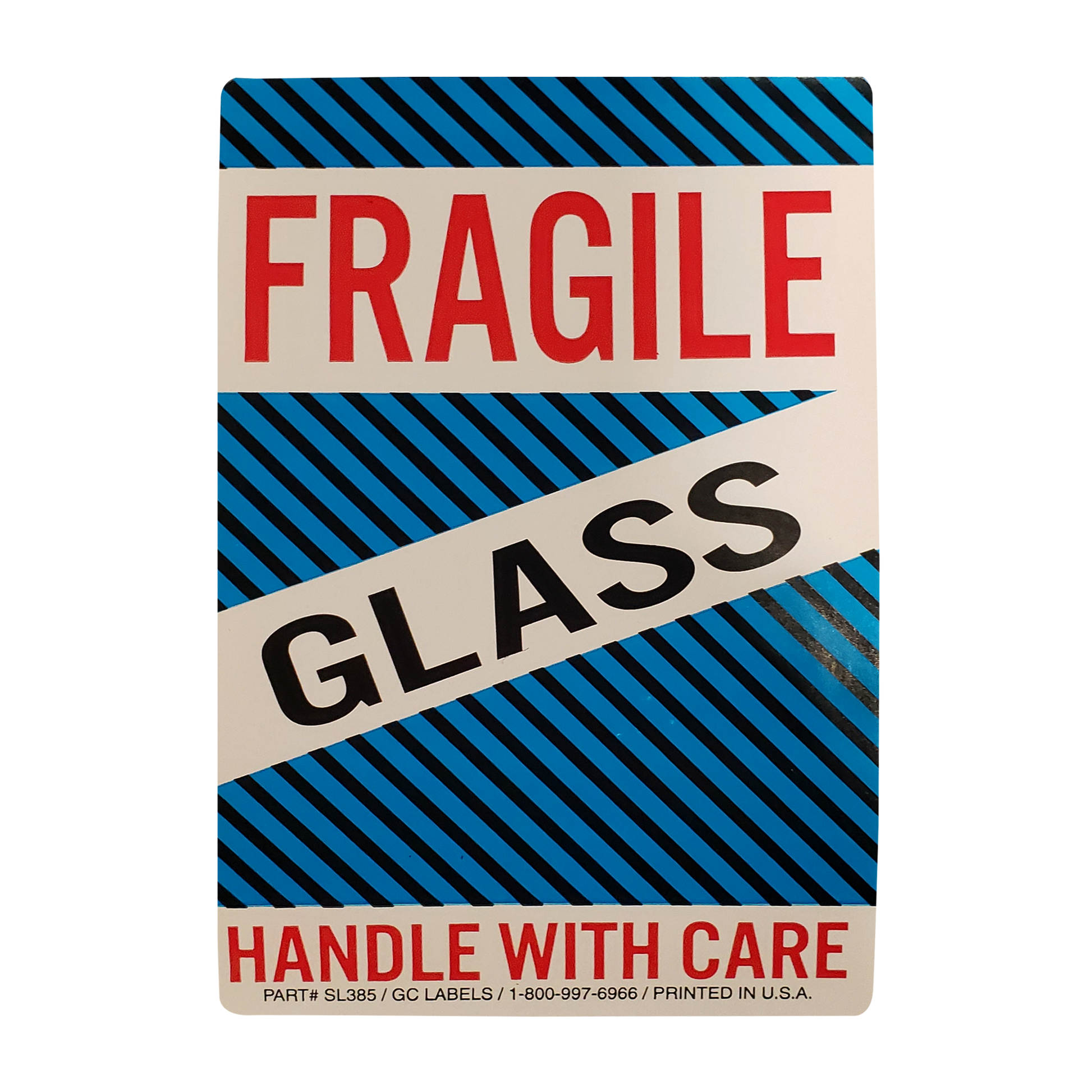 Fragile - Glass (Blue, Red and White) Handling Labels, Pressure Sensitive, 500/roll