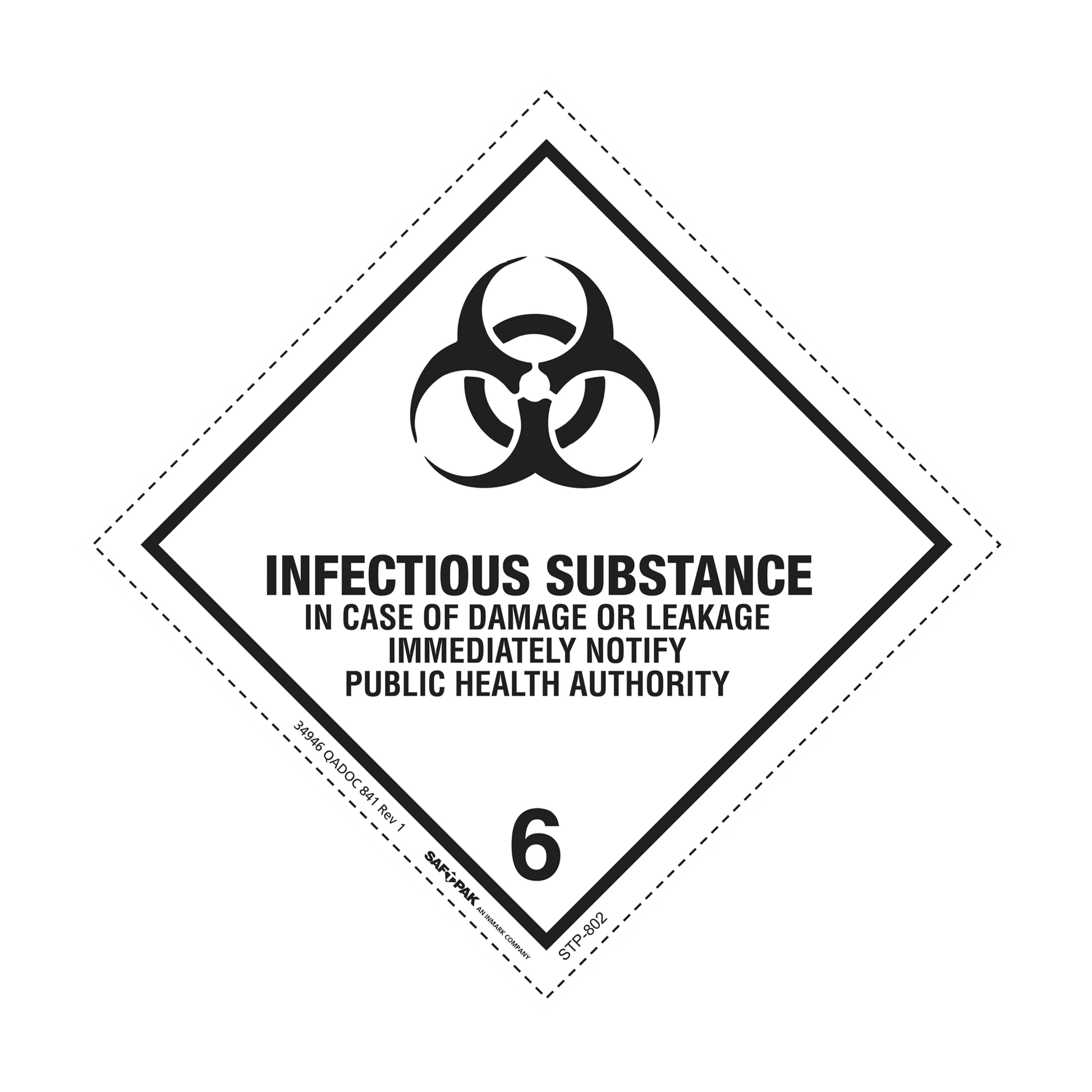 Saf-T-Pak® STP-802 Class 6.2 Infectious Substance Labels, 4 x 4", 120/Case, (US or Canada)