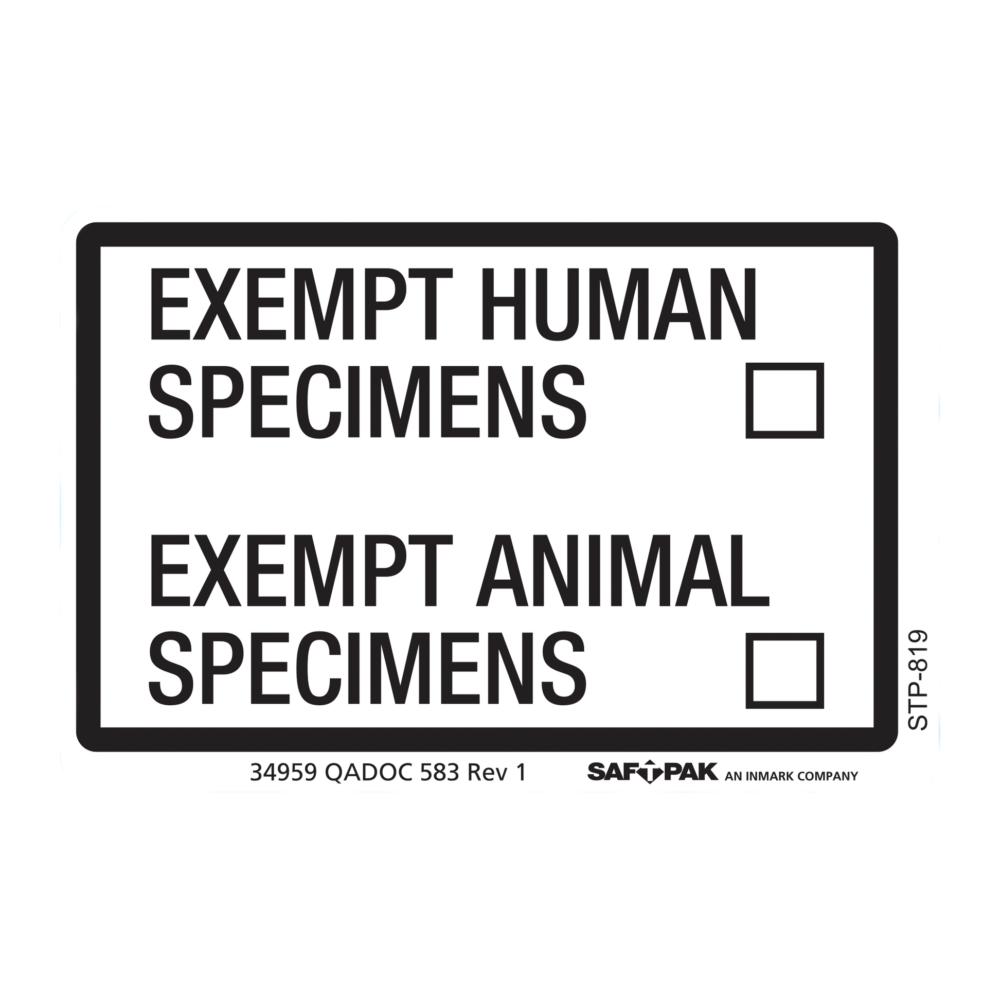 Saf-T-Pak® STP-819 Exempt Human / Exempt Animal Specimen Labels 2"x3" , 120/Case